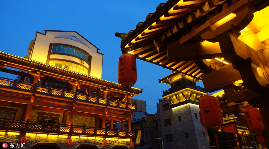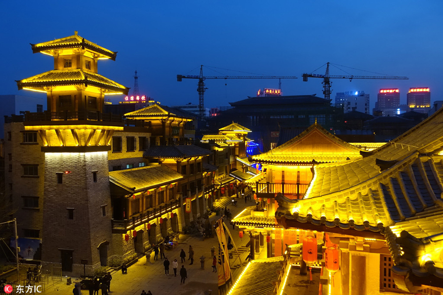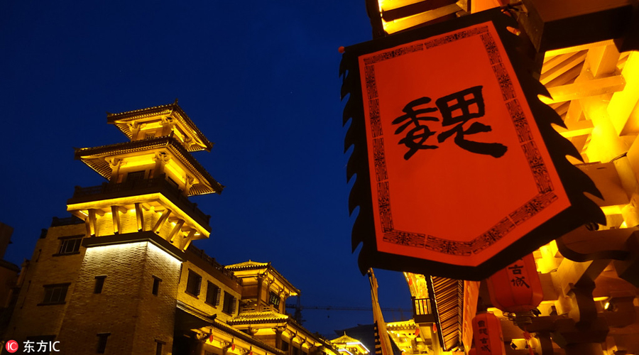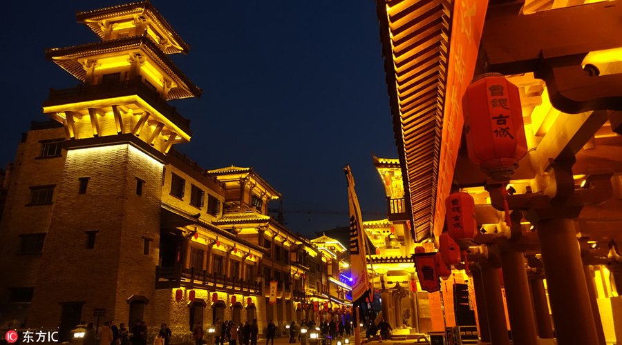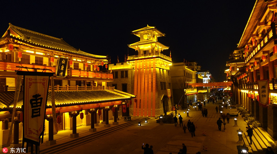 A view of the Caowei ancient city at night in Xuchang city, Central China's Henan province, March 7, 2018. [Photo/IC]