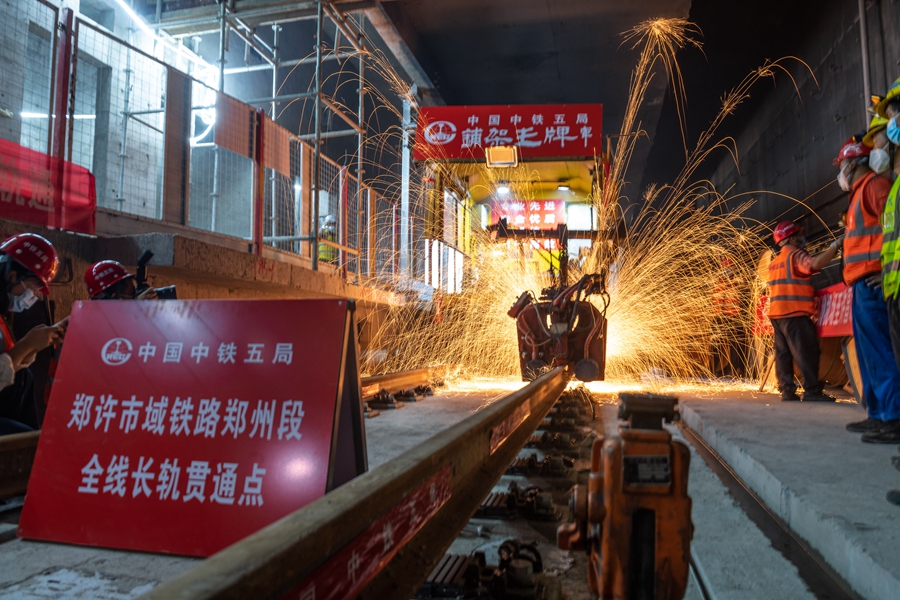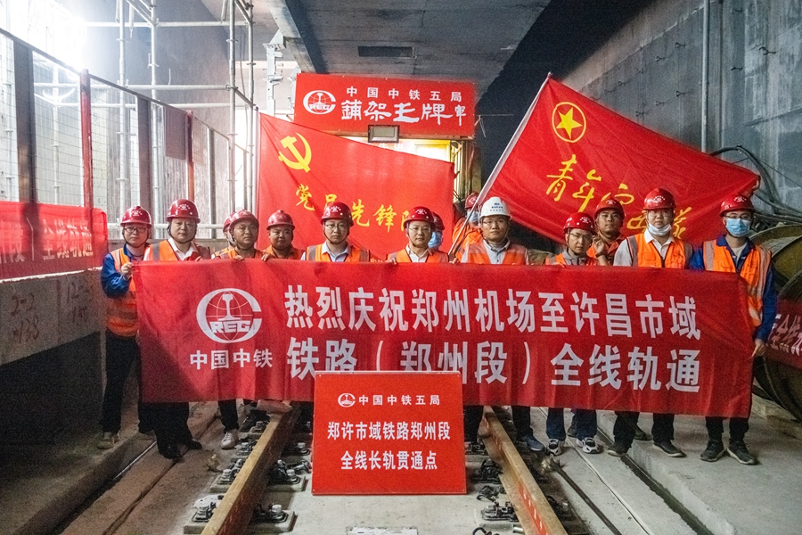 The railway running between the airport in the provincial capital of Zhengzhou and a neighboring city in the province, Xuchang, was completed with the laying of tracks for the Zhengzhou section.