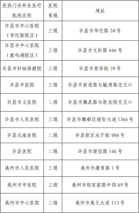 为科学精准防控疫情,进一步加强疫情期间广大居民群众的医疗服务保障,引导发热患者有序就诊,现将我市发热门诊信息予以更新公布如下: