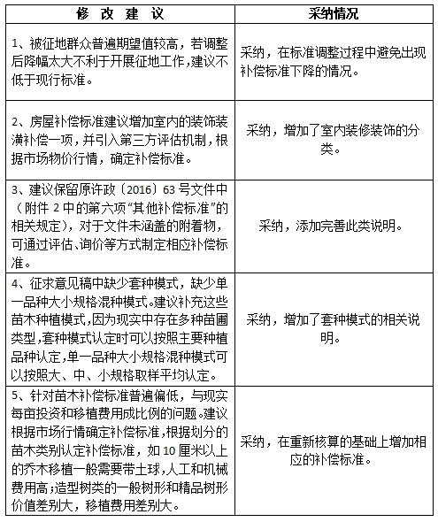 和青苗补偿标准(征求意见稿)》意见的