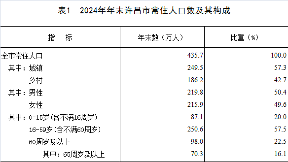 年末全市常住人口435.7万人,其中城镇常住人口249.5万人,乡村常住人口186.2万人;常住人口城镇化率57.26%,比上年末提高1.14个百分点。全年出生人口2.8万人,出生率为6.48‰;死亡人口3.7万人,死亡率为8.54‰;自然增长率为-2.06‰。