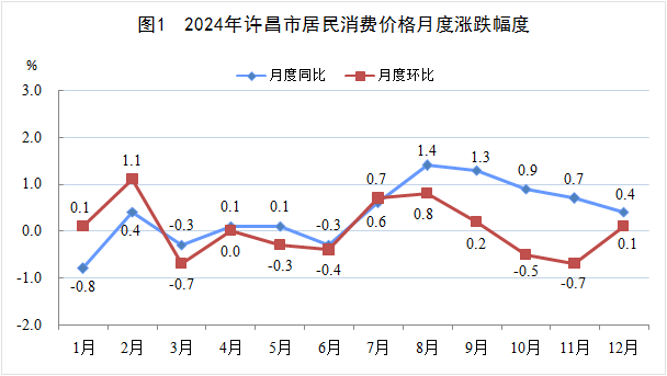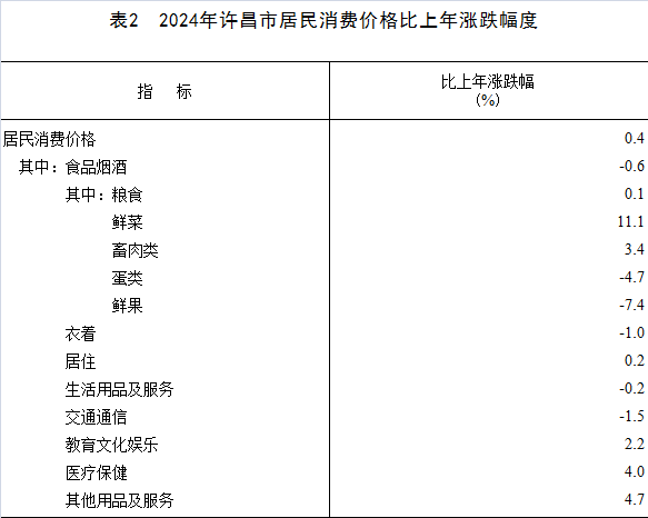全年全市居民消费价格比上年上涨0.4%。其中,食品烟酒价格下降0.6%,非食品烟酒价格上涨0.7%;服务价格上涨2.0%,工业品价格下降0.6%,消费品价格下降0.6%。