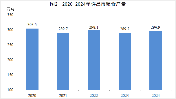 全年全市粮食产量294.92万吨,比上年增长2.0%。其中,夏粮产量170.51万吨,增长7.6%;秋粮产量124.42万吨,下降4.8%。棉花产量0.02万吨,增长13.6%。烟叶产量3.34万吨,增长4.9%。油料产量8.12万吨,增长4.8%。蔬菜及食用菌产量165.40万吨,增长3.7%。