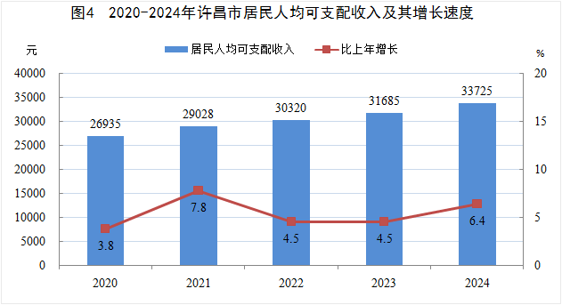 全年全市居民人均可支配收入33725元,比上年增长6.4%。按常住地分,城镇居民人均可支配收入41910元,增长6.0%;农村居民人均可支配收入25803元,增长6.5%。