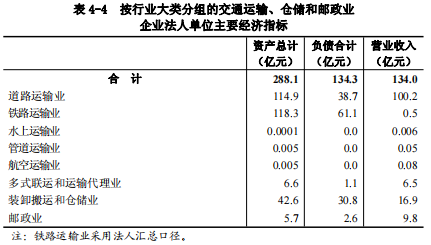 2023年末,全市交通运输、仓储和邮政业企业法人单位资产总计288.1亿元,负债合计134.3亿元。