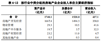 2023年末,全市房地产业企业法人单位资产总计1740.1亿元。其中,房地产开发经营企业1667.4亿元,物业管理企业29.3亿元,房地产中介服务企业19.7亿元。房地产业企业法人单位负债合计1520.0亿元。