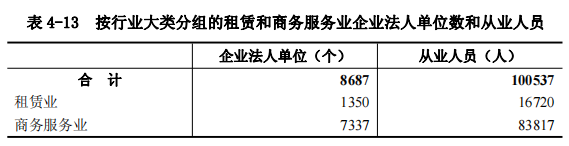 2023年末,全市共有租赁和商务服务业企业法人单位8687个,从业人员10.1万人。