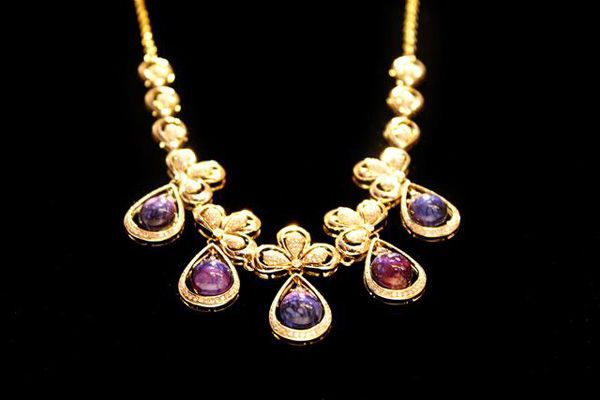 钧瓷釉面浑厚凝重,乳光莹润,似玉非玉胜似玉。设计师们把这种新的首饰主石,以喜马拉雅山域一种稀有宝石命名,叫做“天珠”。钧瓷首饰最高贵之处还在于它的“惟一性”。钧瓷“入窑一色,出窑万彩”,换而言之,钧瓷的窑变,具有很大的变数。生产出来的钧瓷天珠,每一颗都不相同。钧瓷天珠的取舍,不仅要看其形状、色泽、纹路和窑变效果,还要观其气、应其势、扬其韵、取其神,做到钧瓷“外六相”和“内六品”的统一。可以说,他们对钧瓷天珠挑选的复杂程度,不亚于选美。