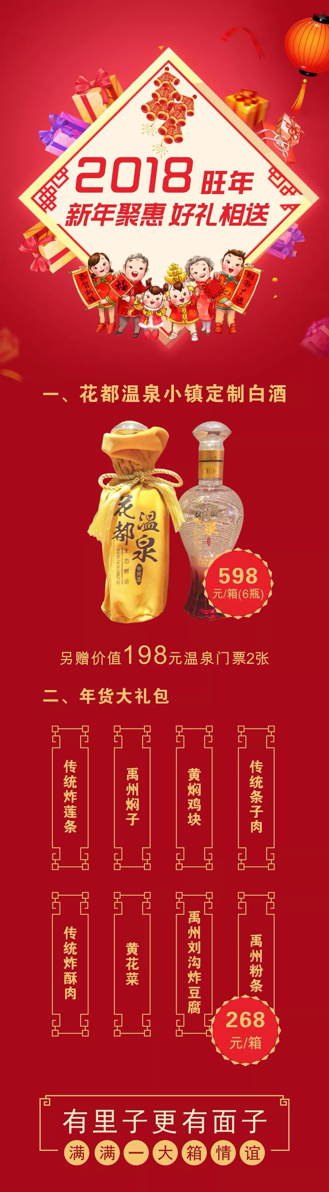 春节越来越近,年味越来越浓,春节礼包花都温泉已准备好,送亲朋好友最佳首选!唯有美食+美酒不可辜负!