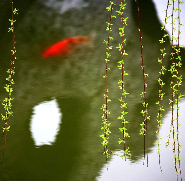 春风吹动的时候,柳树的枝条上叶苞鼓胀,一个,又一个,均匀地排列着,像是水墨画上好看的墨点,溢满了淡雅的意趣。我想,每棵柳树上的叶苞也许有上千个,如果那些叶苞真是水墨画上的墨点,那么,柳树就是一幅美丽动人的图画了。