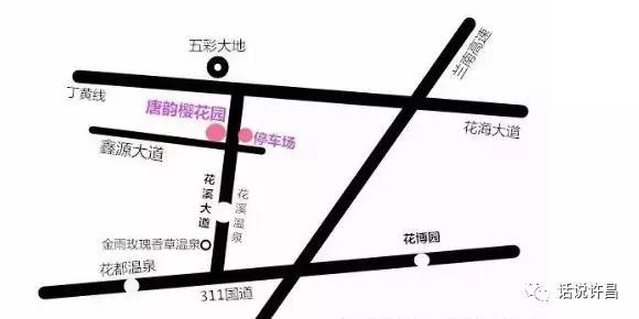 原焦高速 -京港澳高速-商登高速 -机西高速-兰南高速鄢陵站下 -311国道 -花溪大道-唐韵樱花园