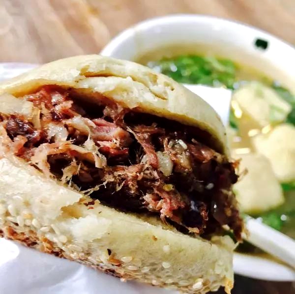 鄢陵的吊炉烧饼状圆如月,上部弧状隆起,通体橙黄油光,晶莹脂腻,外酥里软,饼皮金黄酥脆,里面柔软熟透,饼盖洒满芝麻,看上去宛如一件做工精巧的艺术品,形色俱佳,给人一种不可抵挡的食欲。 入口香酥鲜嫩,余香溢口,回味久长。“吊炉烧饼趁热吃!”这是每一个鄢陵人都知道的常识,因为刚出炉的烧饼焦香酥嫩,咬一口满口留香,口舌生津。