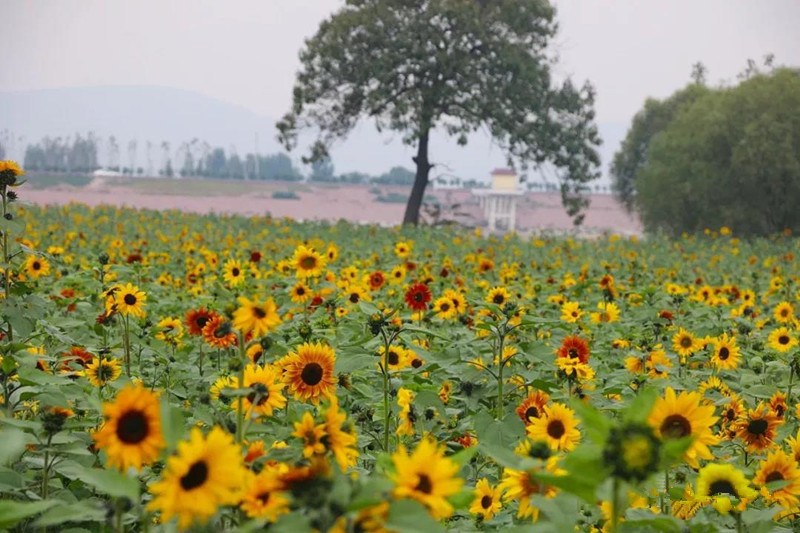 波斯菊、柳叶马鞭草、格桑花,多彩向日葵......千万株鲜花在深秋季节争相斗艳,花香伴着和煦的微风,沁人心脾。