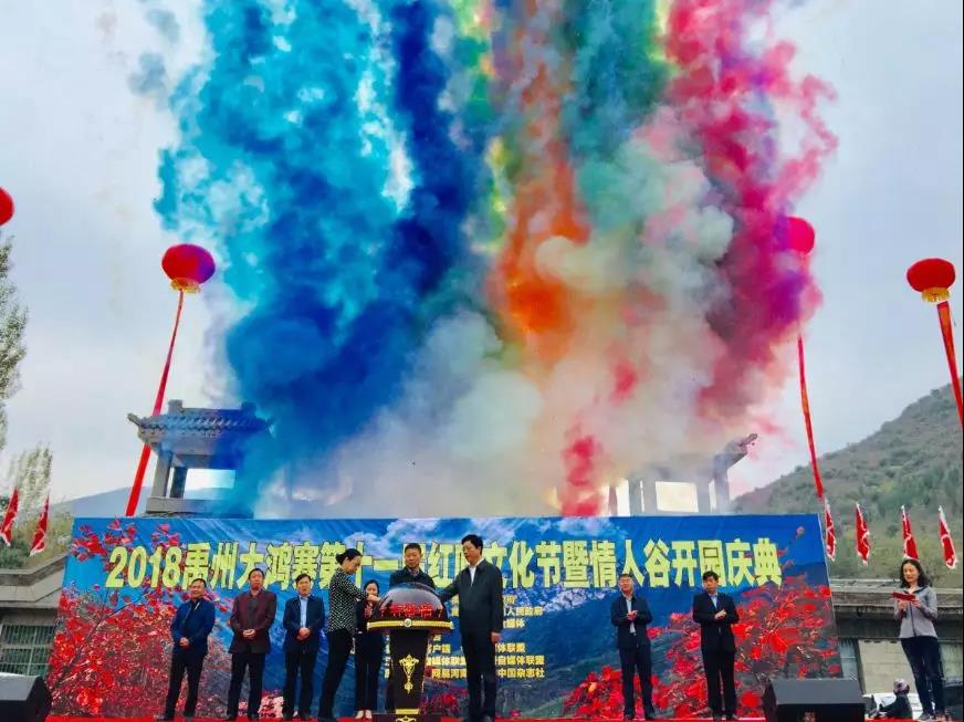 10月20日,大鸿寨景区人潮涌动,禹州大鸿寨第十一届红叶文化节暨情人谷开园庆典在此隆重举行。世界杯投注网站旅游局副局长康松朝、禹州市委常委宣传部长李益民、禹州市副市长牛艳伟共同按下红叶文化节启动球,禹州市政府办机要室主任王盼攀、禹州市旅游局局长李志领、鸠山镇镇长朱海鹏等领导出席开幕式。