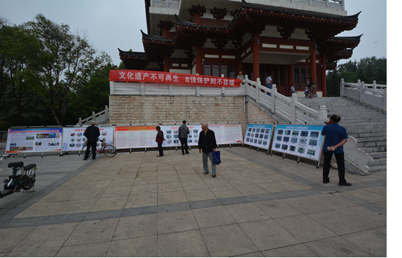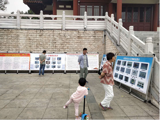 活动现场,通过悬挂“文化遗产不可再生 加强保护刻不容缓”条幅,展出出土文物精品图片、文物发掘现场、文物法律法规图片,发放文物法律法规宣传手册等形式,向过往行人及游园群众口头讲解有关文物保护的法律知识,解答市民疑问。