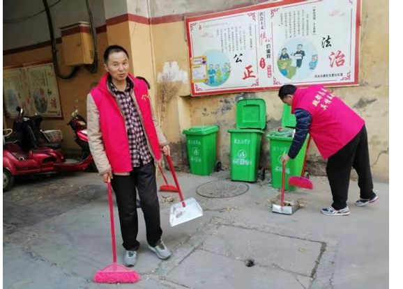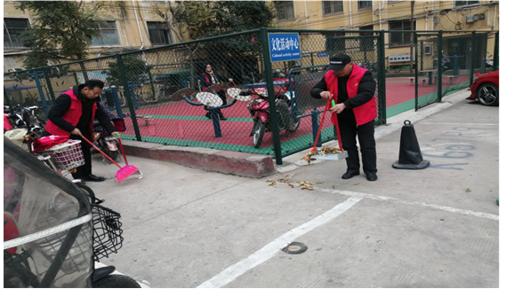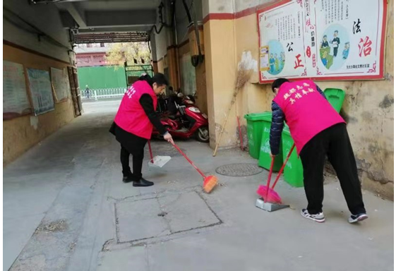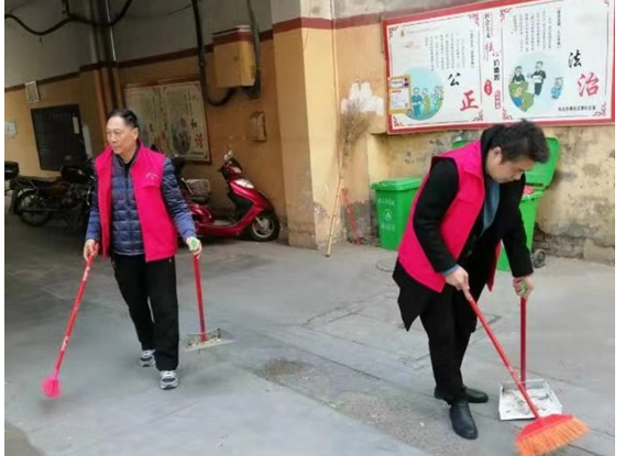 戏曲中心豫剧部志愿者在文惠社区打扫卫生