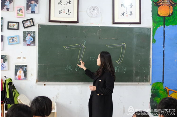 这一期的课程,书法老师着重给孩子们讲了毛笔笔画“横折”的写法,包括“横折”、“横折勾”等的写法。孩子们学习书法的兴趣在慢慢培养。