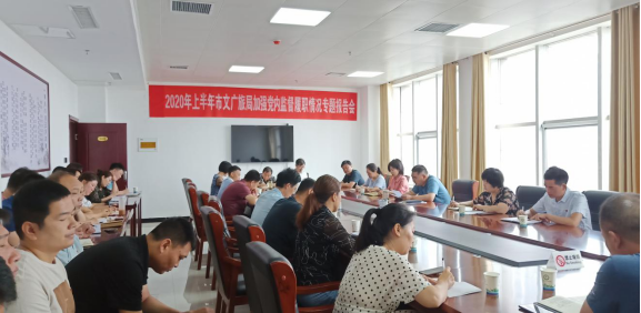 6月22日上午,市文广旅局在局902会议室召开“2020年上半年市文广旅局加强党内监督履职情况专题报告会”,市纪委监委派驻第六纪检组及局全体党员干部职工共40余人参加本次专题报告会。报告会由副局长刘彩琴主持。