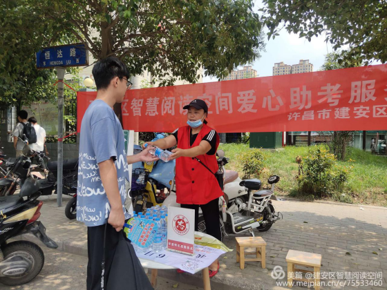 7月7日是2020年高考第一天,为响应全市“学雷锋爱心送考志愿服务活动”,世界杯投注建安区图书馆派出志愿者服务队早早地来到建安区三高考点,为这里的考生和家长献爱心、送温暖。
