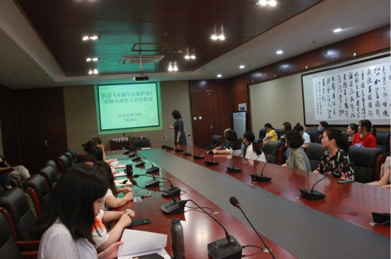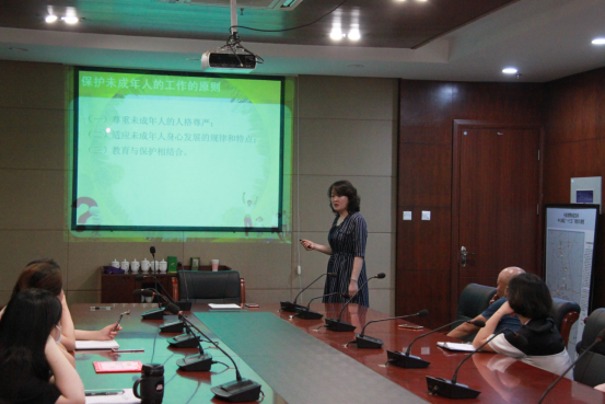 (党馆长为全体职工讲解保护未成年人的工作原则)