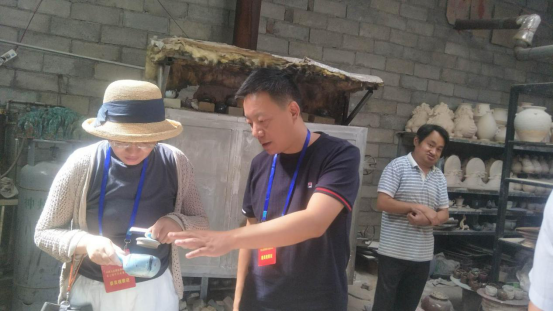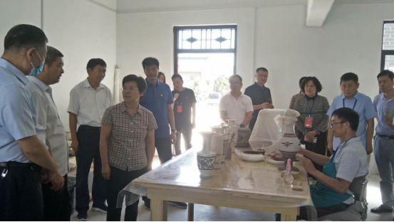 在浅井镇扒村席家钧窑,刘瑞红一行了解了扒村瓷烧制技艺项目整体情况、生产流程、销售渠道等,对传承人们坚守扒村瓷传统制作技艺,结合现代生活需求,设计开发满足合乎大众需求的产品给予充分肯定。