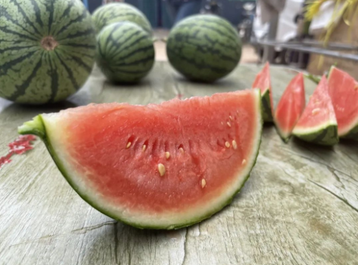 它不仅长得可爱,瓜瓤漂亮,口感也是很爽口的哟,甜甜的 脆脆的,每个两三斤重的“小吊”西瓜,好吃不贵又划算~