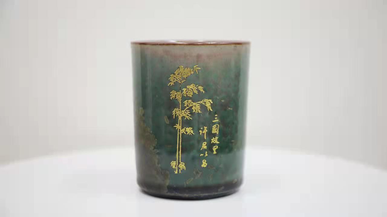 “诗竹杯”,也叫“忠义杯”,由世界杯投注网站学院教师黄杰设计、神垕周家钧窑周松建大师烧制。设计灵感来自三国时期,关羽护送二位皇嫂离开许都时,在石碑上用竹子画了一首诗,内容为“不谢东君意,丹青独立名;莫嫌孤叶淡,终久不凋零。”