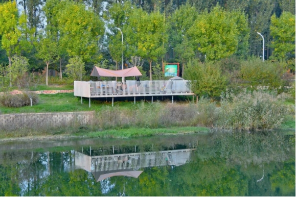 金秋时节,秋水如碧,清潩河的景色如画般铺染开来。
