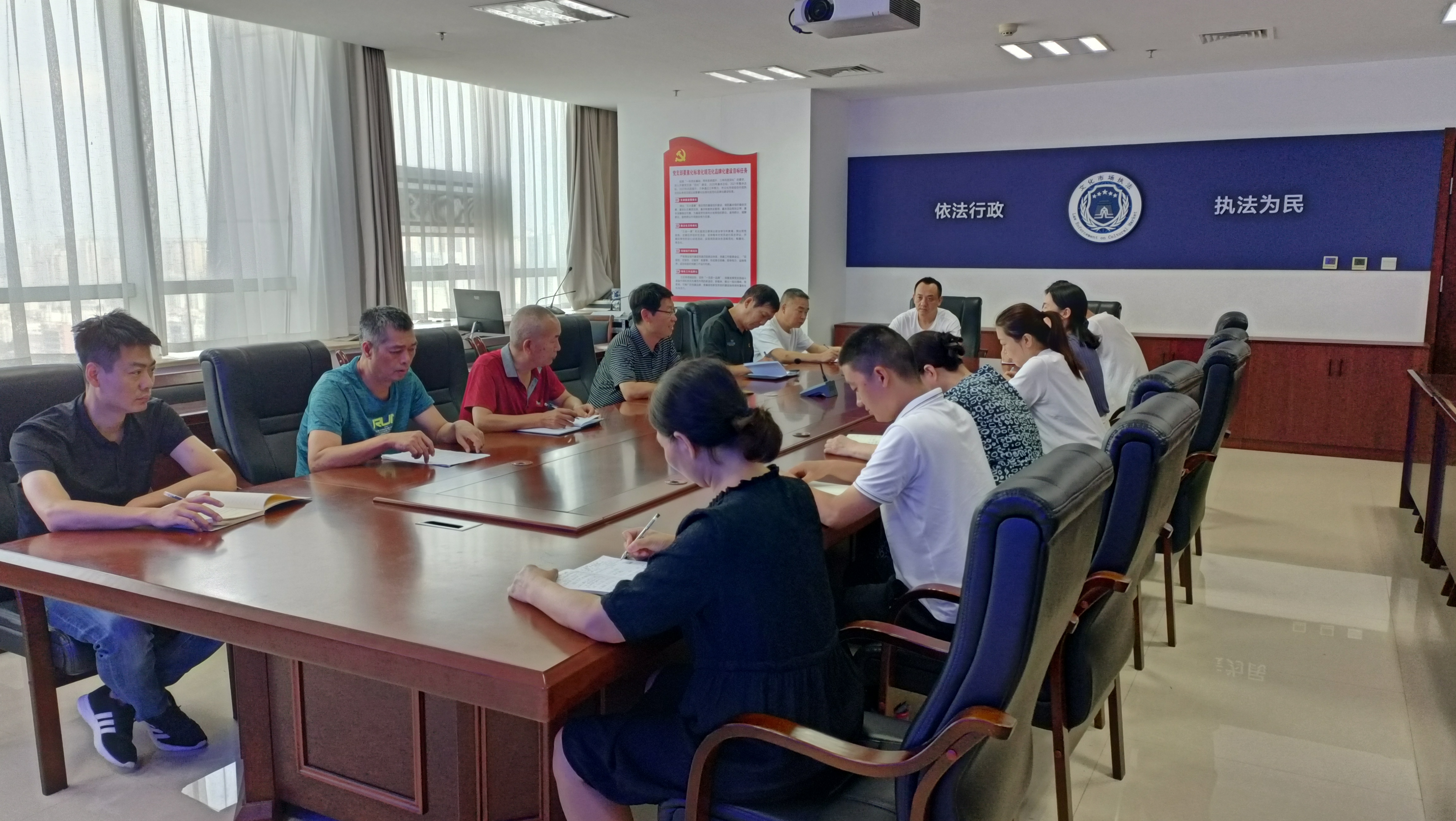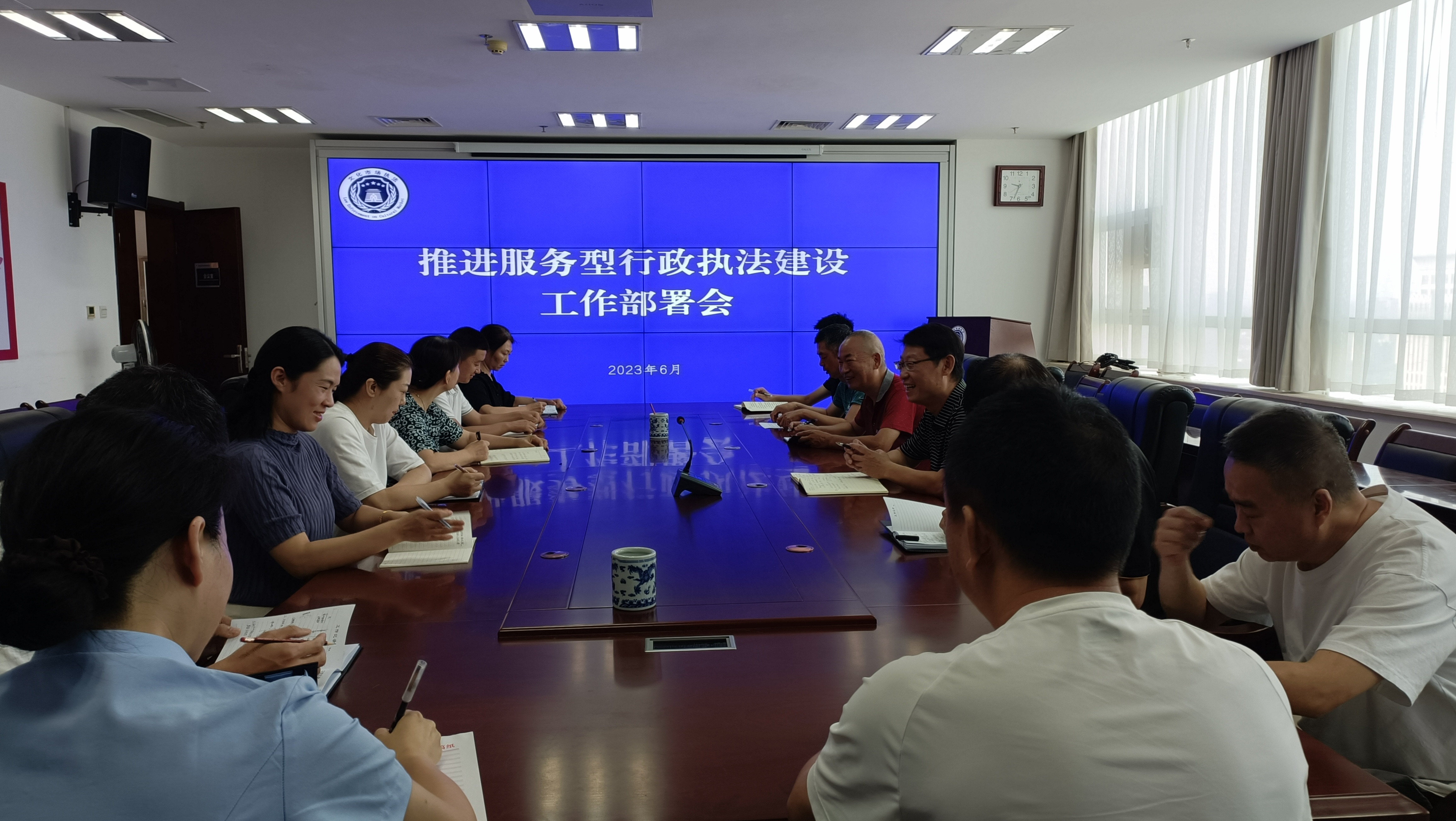 为深入推进服务型行政执法建设,优化法治化营商环境,扎实做好服务型行政执法示范点创建工作,2023年6月28日,世界杯投注文化市场综合行政执法支队召开服务型行政执法工作推进会,市文化市场综合行政执法支队支队长杨向辉主持,中层以上干部参加。