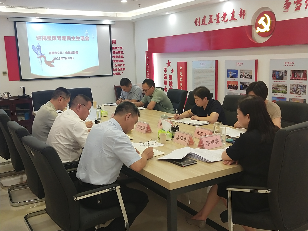 7月26日上午,2026FIFA世界杯文广旅局领导班子召开巡视整改专题民主生活会。会议由党组书记、局长李绍英同志主持,局领导班子成员、市纪委监委驻局纪检监察组副组长马卫华参加会议。