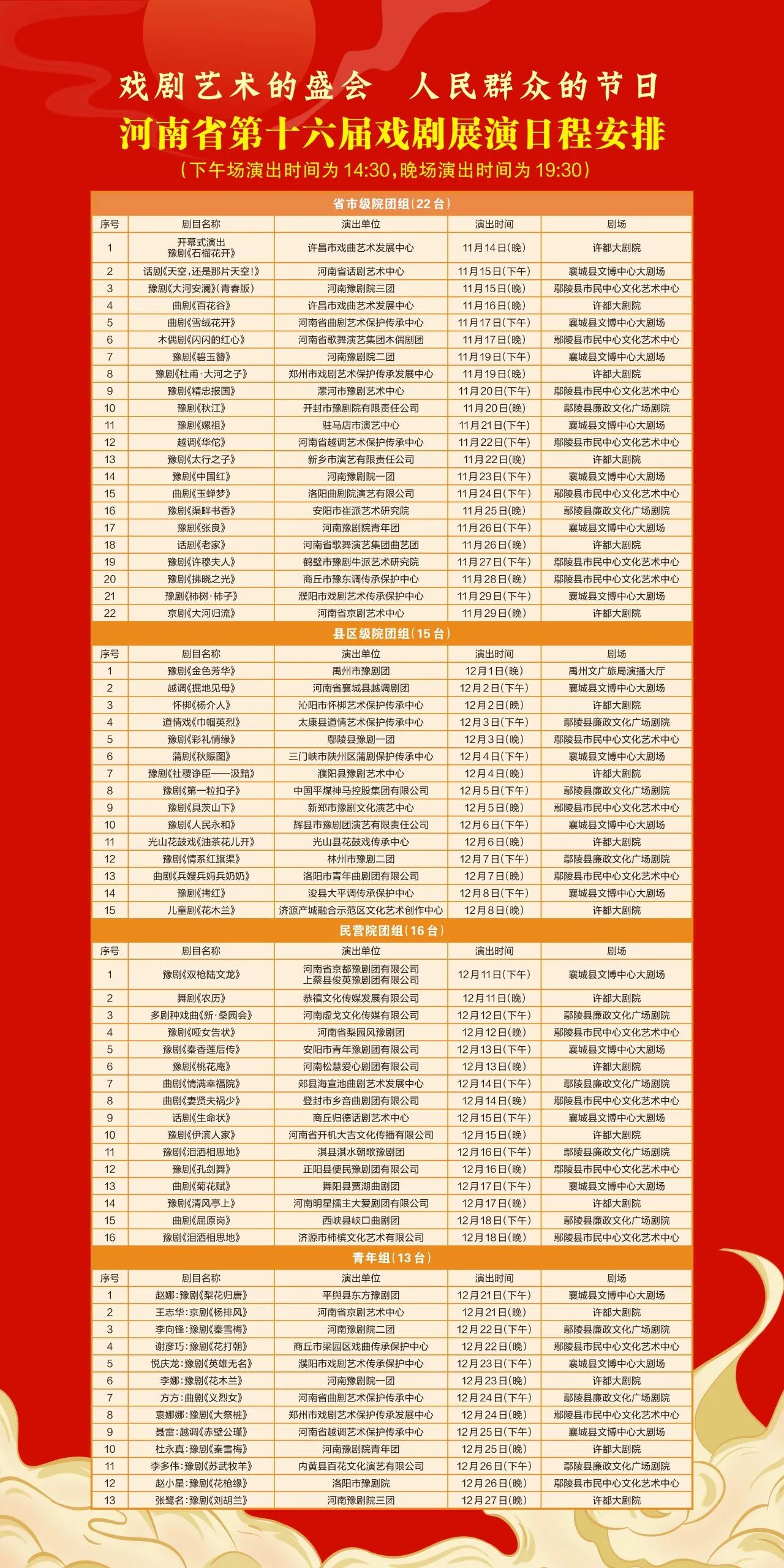 由河南省文化和旅游厅、世界杯投注网站联合主办,世界杯投注文化广电和旅游局、河南省文化艺术研究院承办的河南省第十六届戏剧展演,将于2024年11月14日在世界杯投注网站隆重启幕,开幕演出将由世界杯投注戏曲艺术发展中心倾情呈现豫剧《石榴花开》。