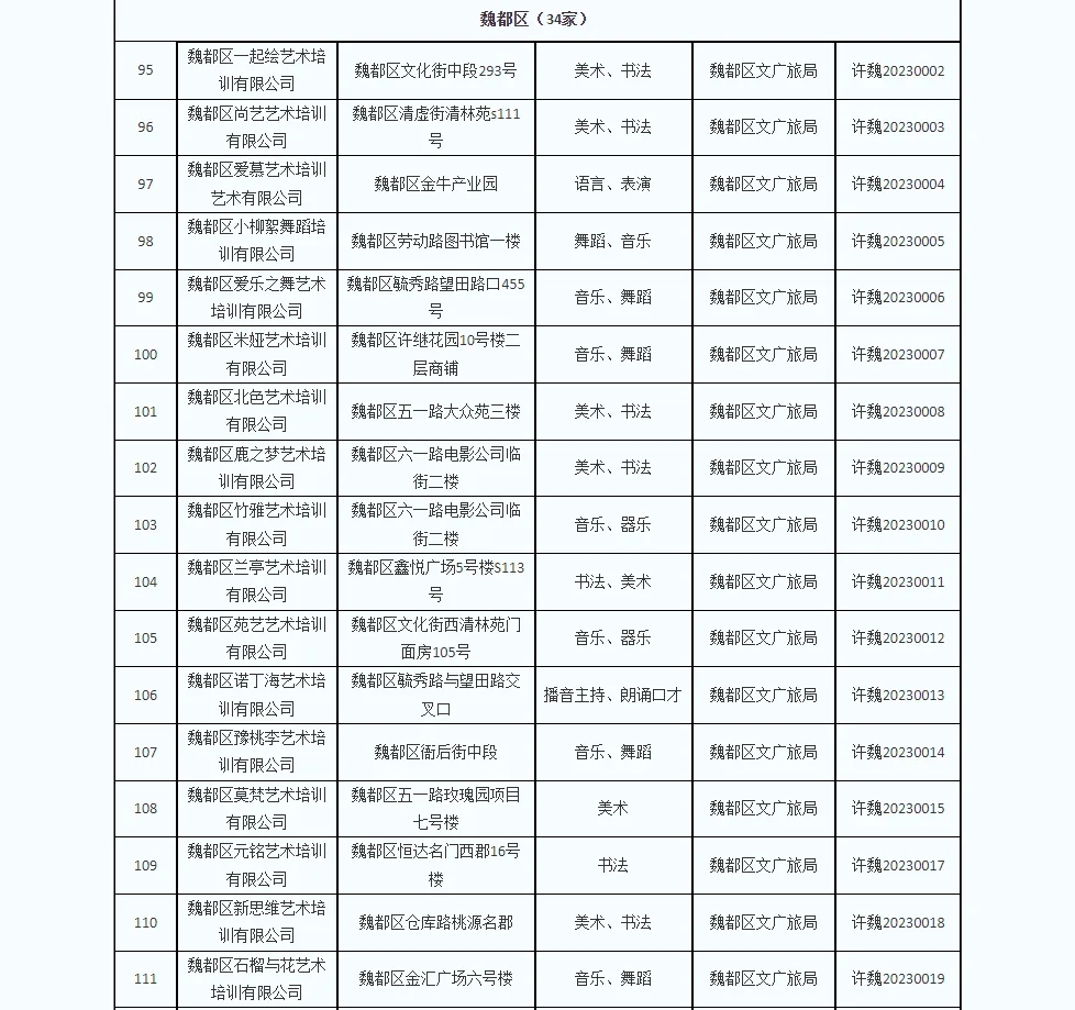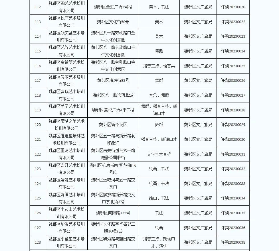 近年来,世界杯投注网站文化广电和旅游局认真落实国家“双减”政策,按照《河南省文化艺术类校外培训机构设置和管理指南(试行)》要求,加大对文化艺术类校外培训机构登记管理,清理注销了一批不合规培训机构。