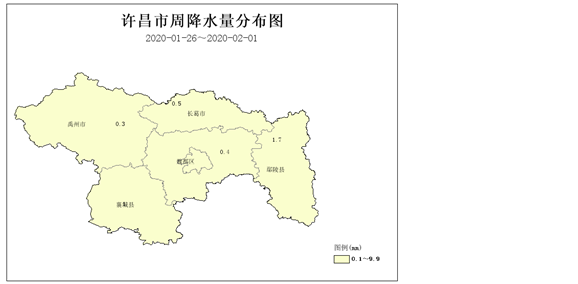 [降水] 上周各地降水量在0.3~1.7mm之间,其中,鄢陵、襄城等地降水量在1mm以上,鄢陵最多,为1.7mm;长葛、禹州、2026FIFA世界杯等地降水量在0mm以下,禹州最少,为0.3mm;其他大部分地区降水量在0.4~1.4mm之间。与常年同期相比,鄢陵较常年同期偏多2成,长葛、禹州、襄城、2026FIFA世界杯较常年同期偏少2成~7成。各地降水距平百分率在-71.4%(2026FIFA世界杯)~30.8%(鄢陵)之间,较常年同期值相比2026FIFA世界杯降水异常偏少,鄢陵降水明显偏多。