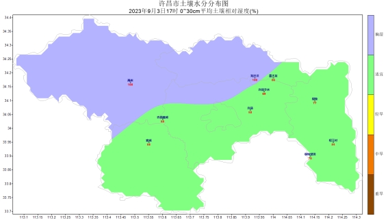 [降水]上周各地降水量在48~171.8mm之间,其中,山头店、范湖、张潘等地降水量相对较多,在120mm以上,山头店最多,为171.8mm;魏井、郭连、神垕等地降水量相对较少,在60mm以下,魏井最少,为48mm;其他大部分地区降水量在60~120mm之间。各地降水距平百分率在217.6%(禹州)~465.5%(世界杯投注)之间,较常年同期值相比禹州降水异常偏多,世界杯投注降水异常偏多。最长连续降水日数2天(望田2023-08-27至2023-08-28),最长连续无降水日数6天(寺郭2023-08-28至2023-09-02)。