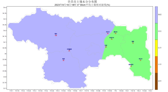 [气温]上周各地平均气温在23(大鸿寨)~27.4℃(佛耳湖)之间,其中:大鸿寨、桂村、小吕等地平均气温较低,在25℃以下,大鸿寨最低,为23℃;佛耳湖、无梁、小靳庄等地平均气温较高,在26℃以上,佛耳湖最高,为27.4℃;其他大部分地区平均气温在25~26℃之间。周内各地最低气温值在9月3日16.7℃(小吕),最高气温值在9月4日35.4℃(蒋李集)。各地气温距平值在2.4℃(世界杯投注fifa官方网)~3.1℃(禹州)之间,较常年同期值相比世界杯投注fifa官方网气温异常偏高,禹州气温异常偏高。