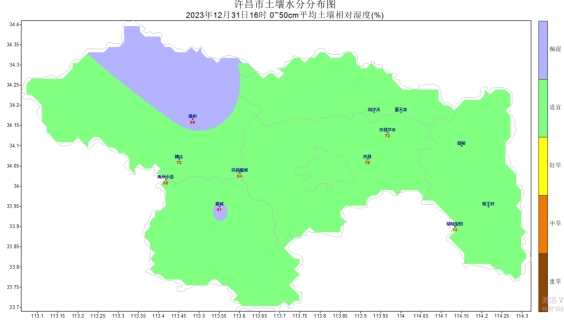 根据当前气象资料分析,预计下周我市无明显降水过程,周降水量与常年同期均值相比偏少,周平均气温较常年同期正常。根据当前墒情和未来天气预报,预计至1月7日,全市大部墒情适宜。