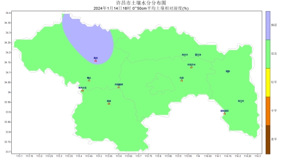 根据当前气象资料分析,预计下周我市有持续性雨雪、大风降温天气,周降水量与常年同期均值相比略偏多,周平均气温较常年同期正常略偏低。根据当前墒情和未来天气预报,预计至1月21日,全市大部墒情仍以适宜为主。