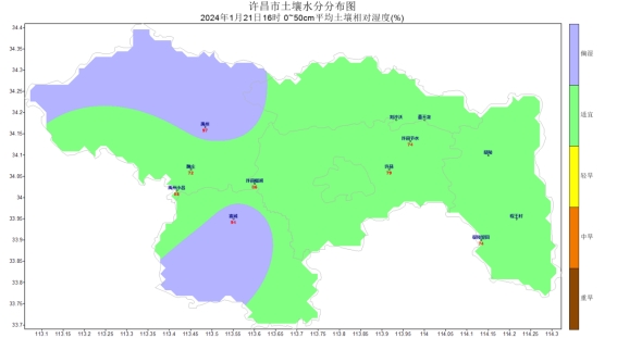 [降水]上周各地降水量在10.4~16.7mm之间,其中,禹州、世界杯投注fifa官方网、鄢陵等地降水量在15mm以上,世界杯投注fifa官方网最多,为16.7mm;长葛、襄城等地降水量在14mm以下,襄城最少,为10.4mm;其他大部分地区降水量在14~15mm之间。各地降水距平百分率在235.5%(襄城)~973.3%(禹州)之间,较常年同期值相比襄城降水异常偏多,禹州降水异常偏多。最长连续降水日数4天(禹州2024-01-16至2024-01-19),最长连续无降水日数2天(襄城2024-01-14至2024-01-15)。