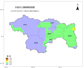 [气温]上周全市各地平均气温在25.3(大鸿寨)~27.9℃(烟草学校)之间,其中:大鸿寨、庄沟、扈阳等地平均气温较低,在26℃以下,大鸿寨最低,为25.3℃;烟草学校、市场管理、市实验等地平均气温较高,在27℃以上,烟草学校最高,为27.9℃;其他地区平均气温在26~27℃之间。阶段内最低气温为21.4℃,出现在大鸿寨(2024-07-18);最高气温为35.5℃,出现在山头店(2024-07-20)。各地气温距平值在-0.3℃(长葛)~0.2℃(鄢陵)之间,较常年同期值相比长葛气温正常,鄢陵气温正常。