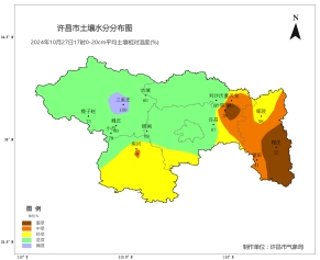 [土壤墒情]根据2024年10月27日17时0-20cm自动土壤水分监测资料显示,全市适宜测站比例为50%,偏湿测站比例为8%,干旱测站比例为42%,干旱测站较上周增加了2个百分点。