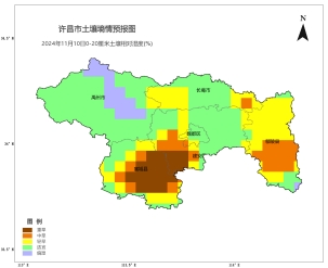 [降水]上周全市各地降水量在0.0~1.7mm之间,其中:大鸿寨、接官亭、苌庄降水量在0.4mm以上,苌庄最多,为1.7mm;小靳庄、庄沟、纸坊水库、禹州艾窝降水量在0.4mm以下;其余各地无有效降水。各地降水距平百分率在-100.0%(长葛)~-100.0%(襄城)之间,较常年同期值相比长葛降水异常偏少,襄城降水异常偏少。