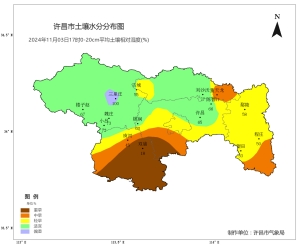 根据当前气象资料分析,预计下周我市以多云天气为主,4-5日最高气温较前期下降明显,5日和6日早晨最低气温降至4℃上下。周降水量较常年同期偏少,周平均气温接近常年同期。根据当前墒情和未来天气预报,预计至11月10日,我市大部墒情适宜,东部、南部部分地区土壤墒情较差。