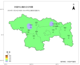 [土壤墒情]根据2024年11月24日16时0-20cm自动土壤水分监测资料显示,全市适宜测站比例为86%,偏湿测站比例为14%。