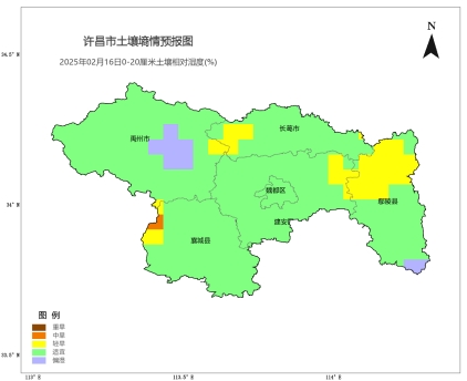 [土壤墒情]根据2025年2月9日08时0-20cm自动土壤水分监测资料显示,全市适宜测站比例为53%,偏湿测站比例为14%,轻旱测站比例为33%。