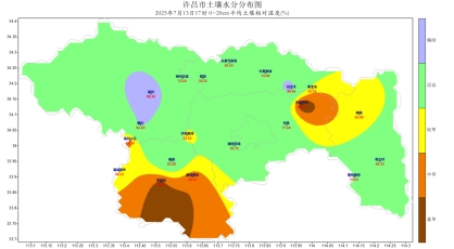 [土壤墒情]根据2025年7月13日17时0-20cm自动土壤水分监测资料显示,全市不旱测站占比60%;干旱测站占比40%;与上周日相比,缺墒测站比例增加了20个百分点。