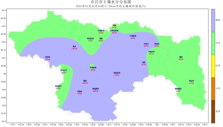 [土壤墒情]10月26日16时自动土壤水分监测资料显示:全市土壤表层(0-20 厘米)墒情适宜测站比例为50%;偏湿测站比例为50%,较上周减少了9个百分点。其中17%的测站土壤水分过饱和。