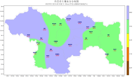 根据当前气象资料分析,预计下周前期我市有降水天气,周降水量接近常年同期;周平均气温较常年偏低2~3℃。根据当前墒情和未来天气预报,预计至11月23日,全市大部土壤偏湿状况将得到进一步改善。