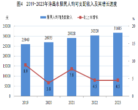 全年全市居民人均可支配收入33725元,比上年增长6.4%。按常住地分,城镇居民人均可支配收入41910元,增长6.0%;农村居民人均可支配收入25803元,增长6.5%。全年全市居...