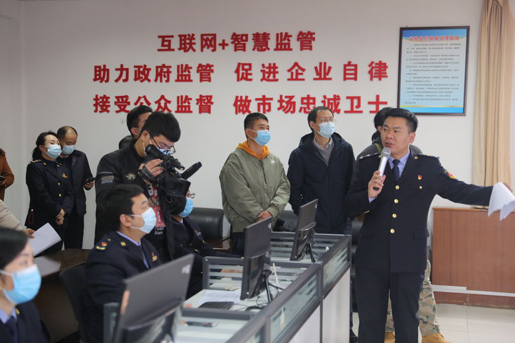在禹州市场监管局智慧监控中心,工作人员向采访的记者介绍禹州市智慧监管平台建设情况,现场演示日常监控巡查、现场处置等工作情况。
