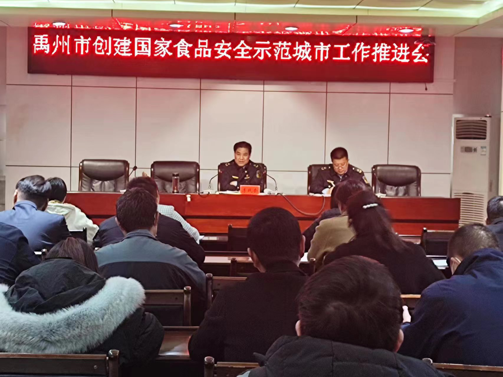 2月27日下午禹州市召开创建国家食品安全示范城市工作推进会,市场监管、农林、粮食、卫健相关股室负责人和44家迎检企业和单位负责人参加会议。